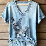 Dulce - Camiseta de mujer con cuello en V estilo bulldog francés
