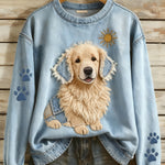 Chica - Sudadera de mujer con mangas largas en estilo retro Patchwork Arte Animal Impresión Casual Comfort