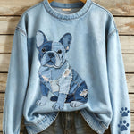 Nina - Sudadera de mujer con patchwork de mezclilla en estilo bulldog francés