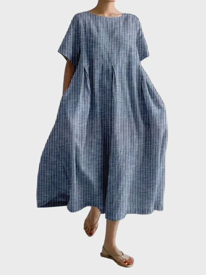 O Vestido Navy Check Breeze é o epítome do conforto e da elegância. O tecido leve com o discreto padrão xadrez proporciona um visual atemporal que se adapta a qualquer ocasião.