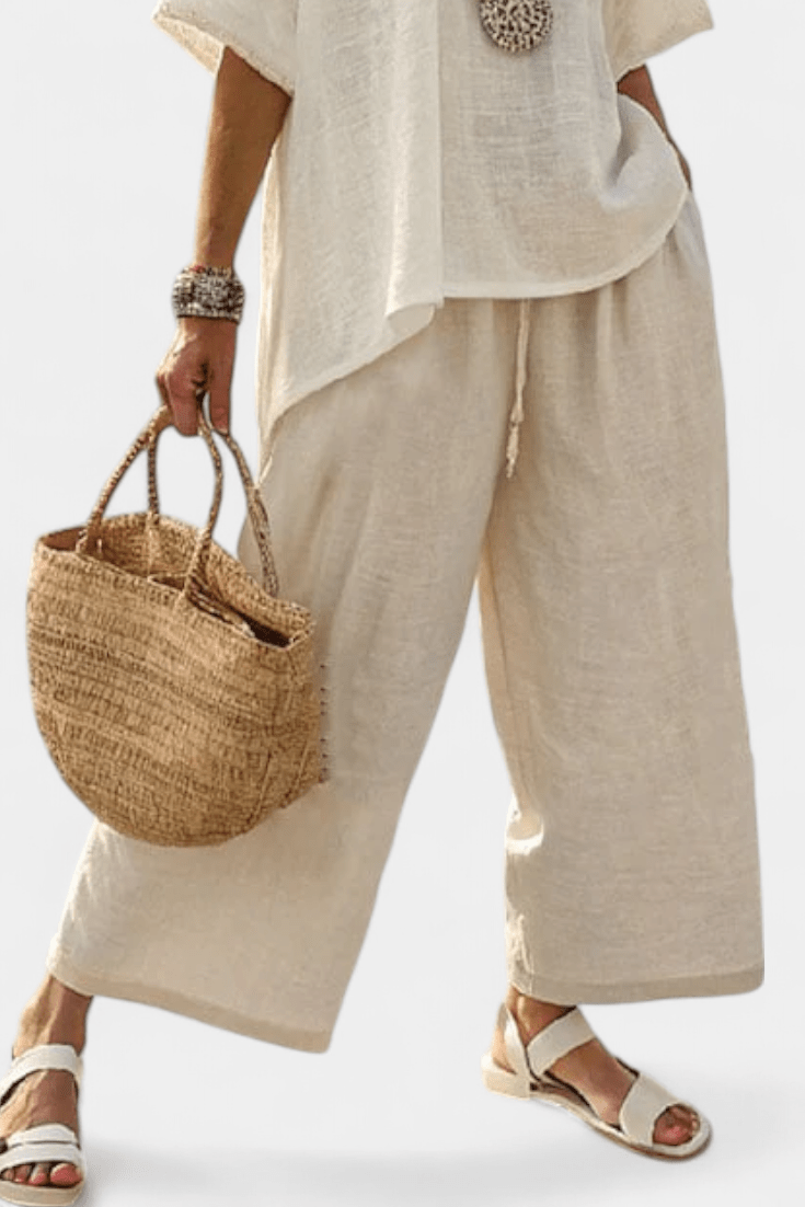 Simplesza pura com elegância natural. O conjunto Daisy destaca-se pela sua silhueta descontraída e monocromática, ideal para quem procura conforto e estilo clean. Feito com tecido leve, este look acompanha cada movimento com frescor e uma elegância relaxada.