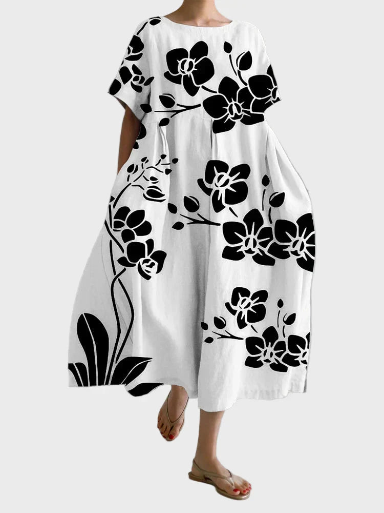 O Psíthiros Triantáfyllou é um vestido que exala romantismo e elegância discreta. O fundo preto com delicadas flores rosa cria um visual sofisticado e, ao mesmo tempo, feminino.