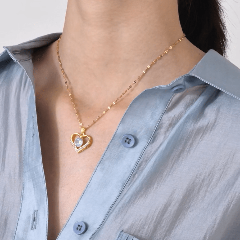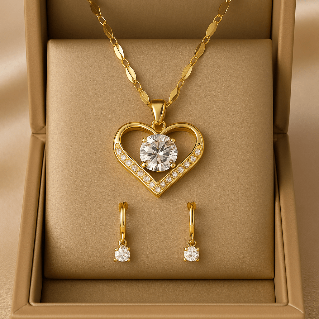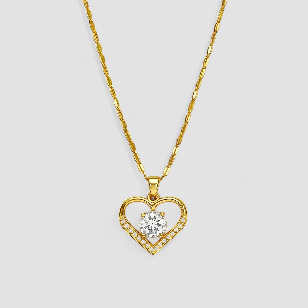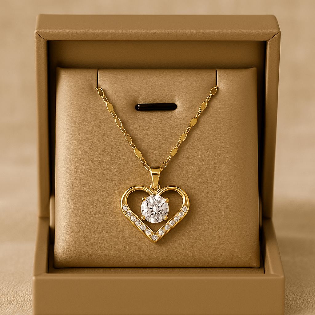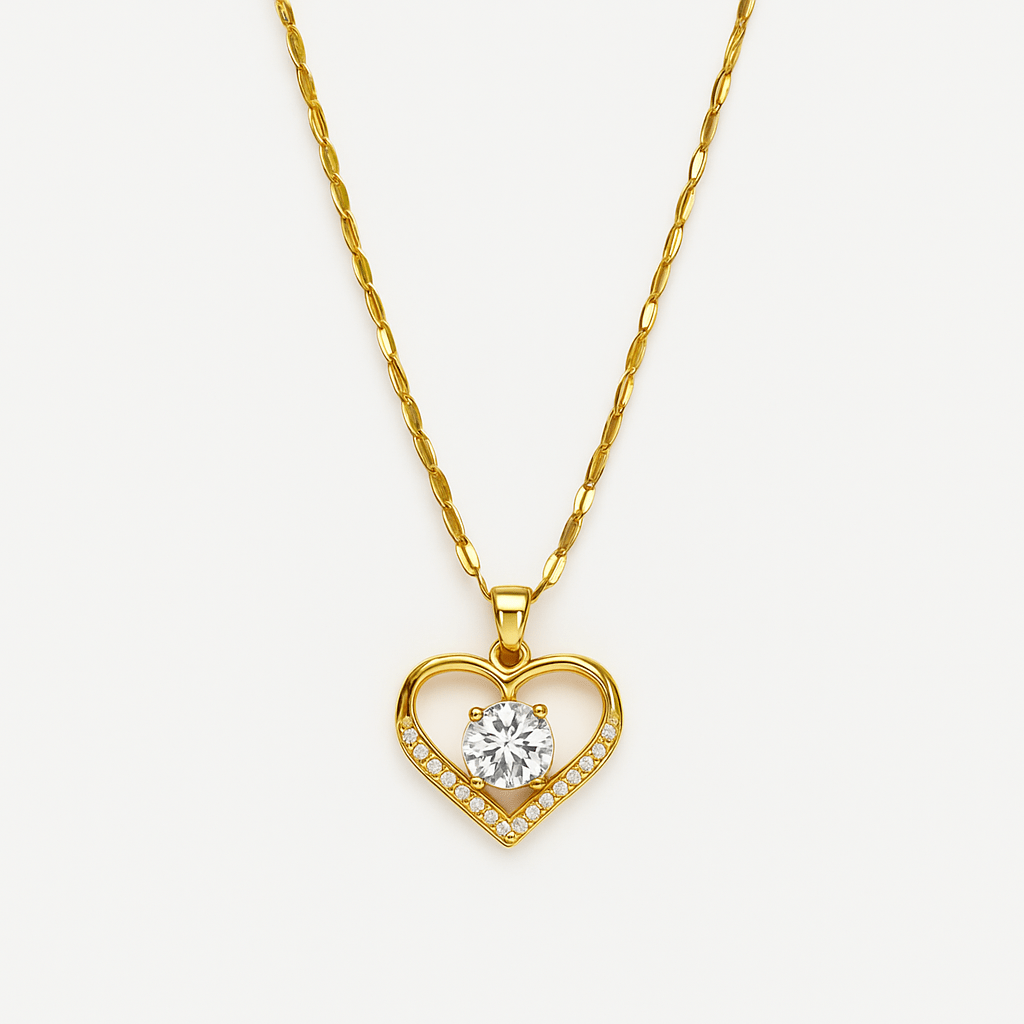 Uma peça de joalharia delicada que une a elegância do ouro à simbologia pura do coração. Destaca-se pelos subtis brilhantes laterais e por uma circonita central de maior dimensão, que capta a luz e simboliza a pureza do amor.