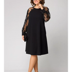 Um vestido preto atemporal que combina simplicidade e sofisticação. As delicadas mangas de renda com estampa floral conferem ao modelo um visual feminino e sofisticado. O corte mais solto garante conforto e liberdade de movimento, enquanto o tecido de alta qualidade assegura um caimento perfeito.