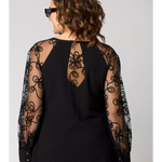 • As delicadas mangas de renda floral conferem um toque feminino e sofisticado.