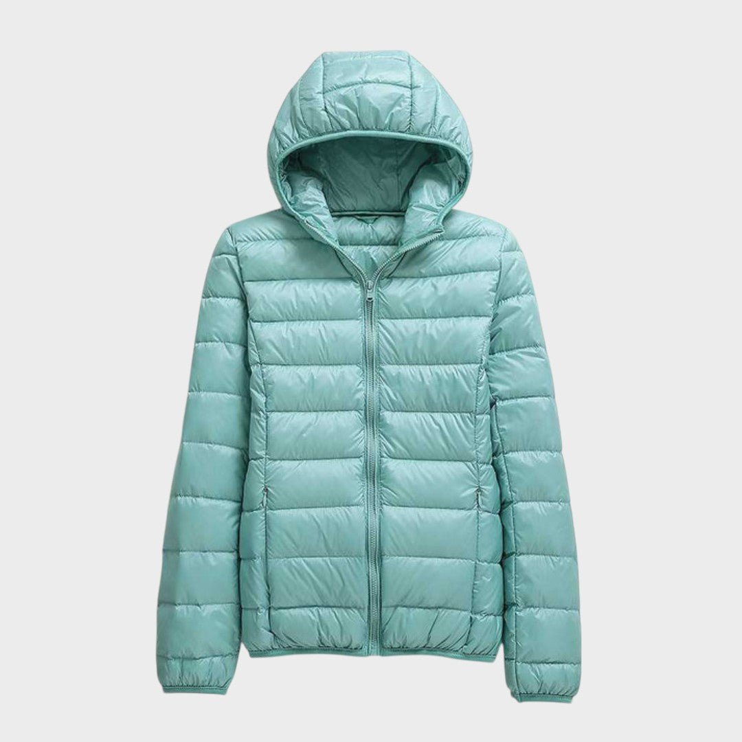 A tecnologia impermeável garante que fiques protegida de chuvas inesperadas, enquanto o enchimento suave em penas te mantém quente sem tornar o casaco volumoso. As pregas refinadas acrescentam um toque de elegância, tornando este casaco perfeito tanto para looks casuais como para conjuntos mais sofisticados.