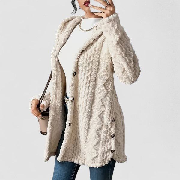O casaco Sarahi™ foi criado para unir estilo intemporal e máximo conforto. Confeccionado em malha suave e flexível, com um corte médio e capuz felpudo, é a peça perfeita para quem procura uma camada prática e refinada em qualquer ocasião. O seu design aberto, aliado a uma silhueta favorecedora, torna-o versátil e fácil de conjugar tanto com coordenados casuais como com looks mais elegantes.