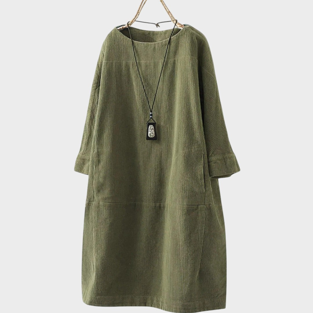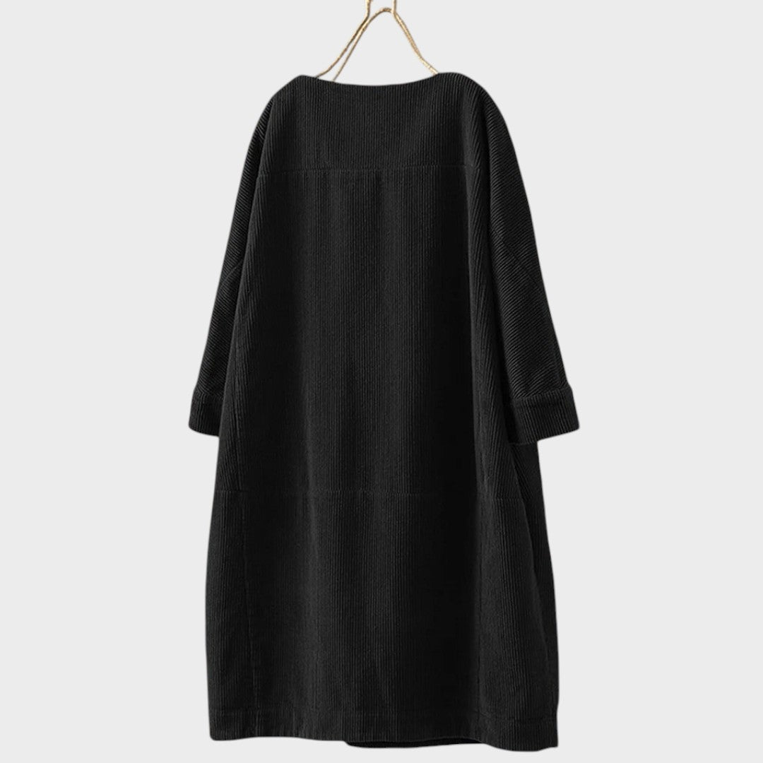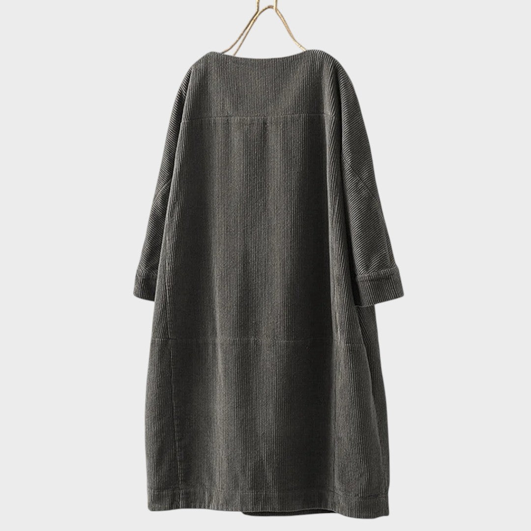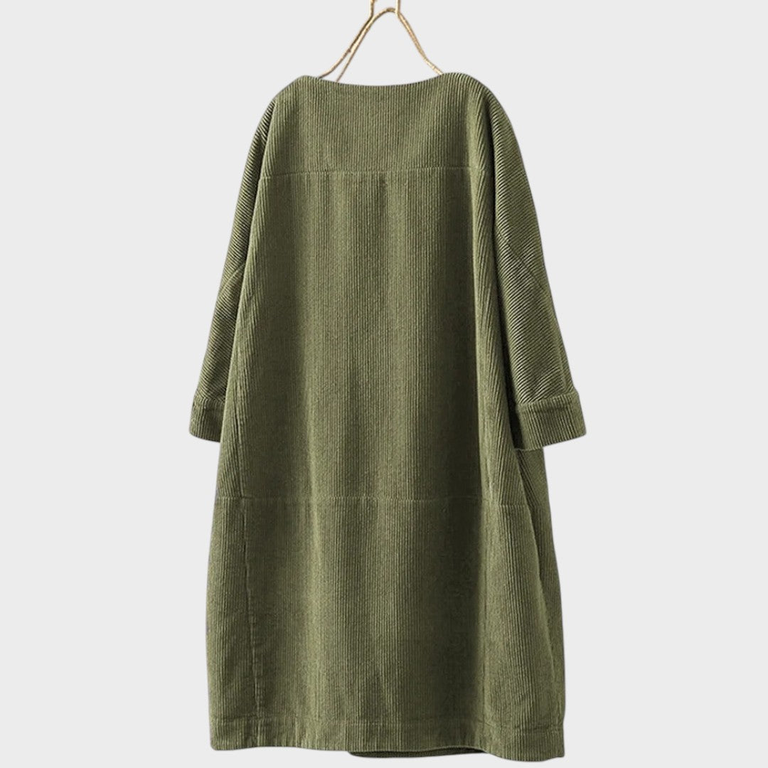 El vestido de pana Paula es la prenda ideal para el día a día, ya que ofrece comodidad y encanto. Confeccionado en pana transpirable con una silueta ligeramente estructurada, ofrece un corte relajado que te encantará en cualquier temporada, ya sea para salir o para relajarte en casa.