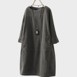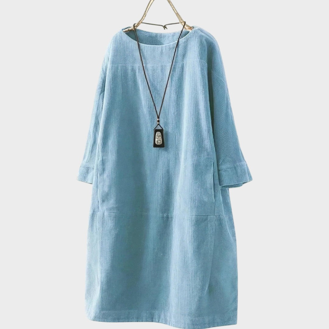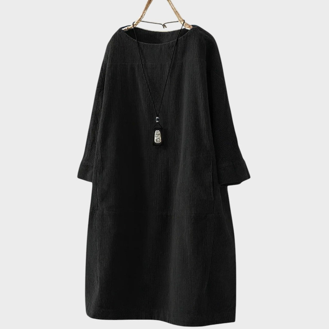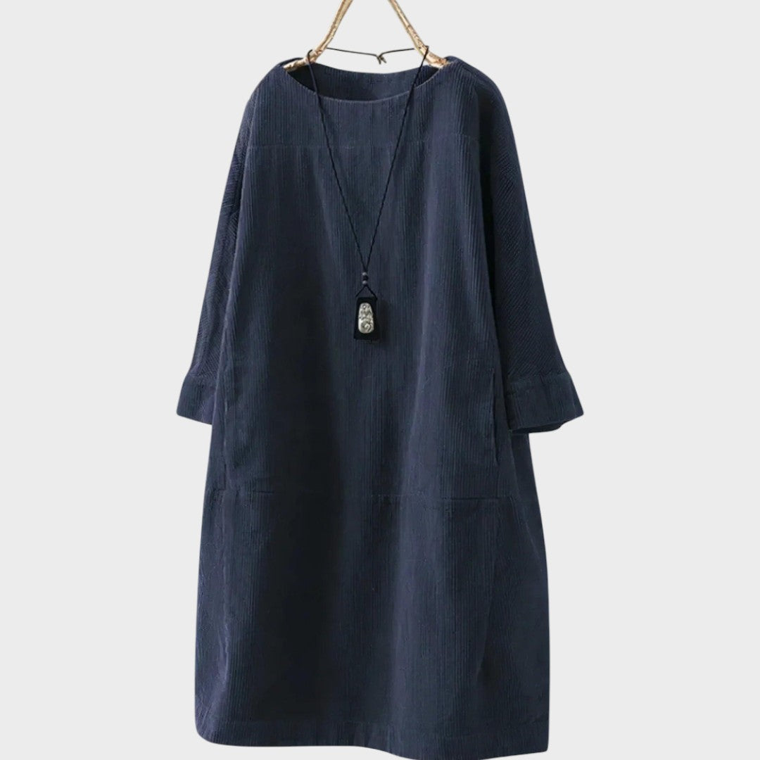 El vestido de pana Paula es la prenda ideal para el día a día, ya que ofrece comodidad y encanto. Confeccionado en pana transpirable con una silueta ligeramente estructurada, ofrece un corte relajado que te encantará en cualquier temporada, ya sea para salir o para relajarte en casa.